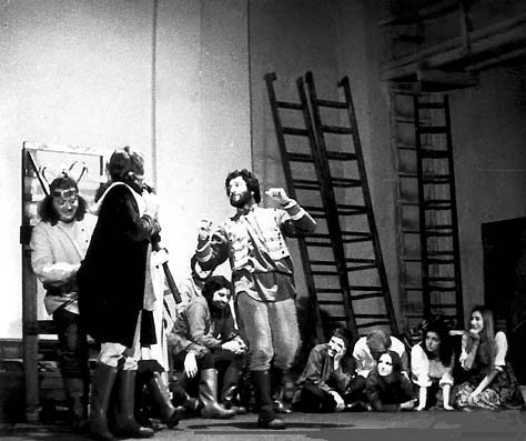 1. Prologo. Gli attori sono già tutti sul luogo, circondano il finto monaco, ne mimano il discorso...