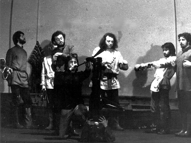 1. Prologo. Gli attori sono già tutti sul luogo, circondano il finto monaco, ne mimano il discorso...